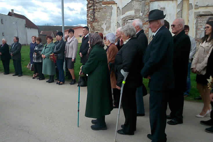 Az ünnepi szentmise után koszorúzásra került sor a kitelepítettek emlékére felállított emlékkőnél. A résztvevőket és a még élő kitelepített idős embereket köszöntötték a település elöljárói és fiataljai. Majd történelmi előadás hangzott el a szomorú és tragikus eseményekről. Idézetek a dokumentumokból: „40 ezer felvidéki magyart deportáltak a cseh Szudétákba"; "36 ezer pozsonyi, kassai, komáromi magyart internáltak, lakásaikat elkobozták"; „327 ezer magyart szlováknak nyilvánítottak"; „181 ezer magyart ítéltek bűnösnek"; „76 616 magyart vagoníroztak és Magyarországra zsuppoltak"…