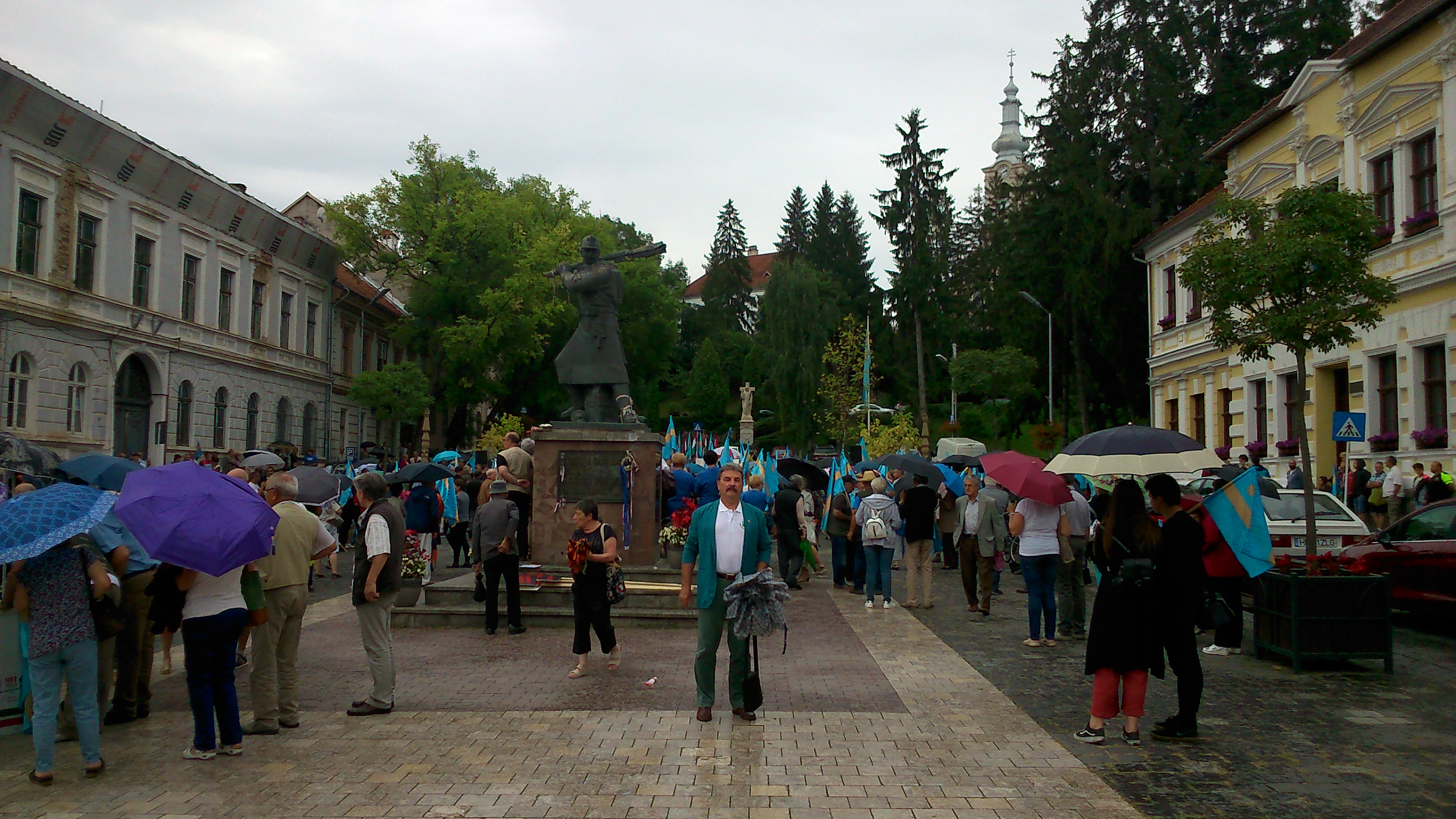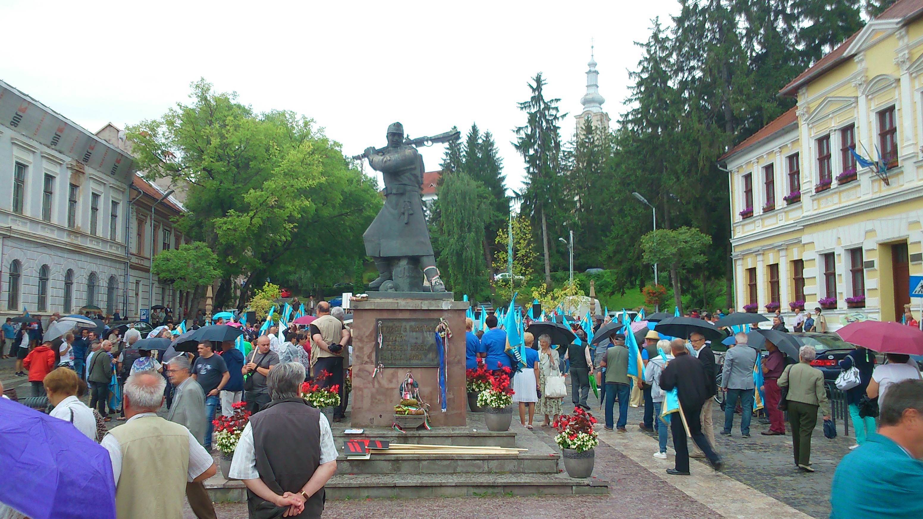 Az Úz-völggyel kapcsolatos programunk még nem ért véget. Másnap Székelyudvarhelyen, a romániai magyarság elleni jogtiprások, a katonai temető elfoglalása ellen, Ne bántsd a magyart! címmel rendezett tüntetésen vettünk részt, melyet az Erdélyi Magyar Néppárt szervezett. A magyar himnusz és Nemzeti dal eléneklése után Tőkés László üzenetét olvasta fel Sándor Krisztina az Erdélyi Magyar Nemzeti Tanács elnöke, aki kiemelte az orcátlan emlékmű állítást, valamint Hargita Megye Tanácsának egykori súlyos mulasztását a határviták rendezése során. Jelen volt és felszólalt a város polgármestere, aki elmondta: „…ez nem román-magyar kérdés, hanem emberi kérdés. Mindennek a legalja, hogy halottainkat sem hagyják nyugodni. Senki ne csodálkozzon, hogy ha nem megfelelő ítélet születik, ha a tolvajt a tolvajnál jelentjük fel, és onnan várunk igazságszolgáltatást. … a magyarok nem hagyják szó nélkül a történteket, és bíznak a mindenki és mindenek feletti hatalomban, amelyik egyszer igazságot szolgáltat. „Mindenekelőtt Székelyföld, mindenek felett az Isten!” - zárta felszólalását a polgármester.