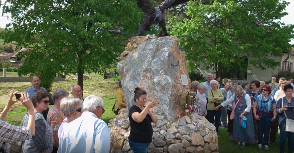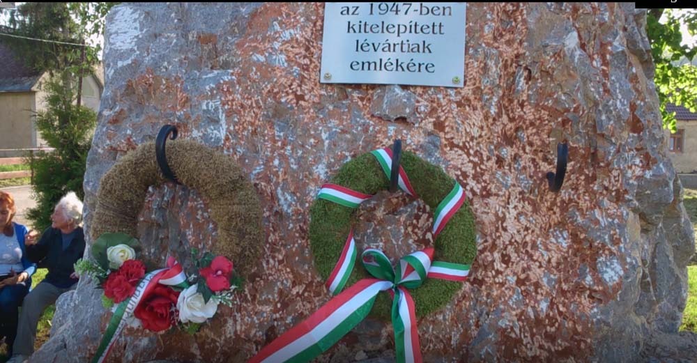 Délután érkeztünk a nap fő eseményének helyszínére Lévártra, ahol 92 magyar ember él. A kis falu közepén álló monumentális Turul szobornál az utazó csoport legfiatalabb tagjai koszorút helyeztek el, az 1947-ben kitelepített lévártiak emléktáblájánál. A Himnusz és Felvidék himnuszának eléneklése után, Halász Márta polgármester köszöntötte a csoportot. Ismertette az emlékmű építésének körülményeit. Céljuk volt emléket állítani azoknak akik nem vallották magukat szlováknak. Akik nem tagadták meg magyarságukat. Akik szolgasorsban is hűek maradtak őseikhez, a magyar nyelvhez és a magyar múlthoz. Itt találkoztunk a 72 éve Nyugat-Csehországba kitelepített lévárti magyarok még 3 élő tagjaival. Itt hallottuk először, a számunkra ismeretlen verseket: